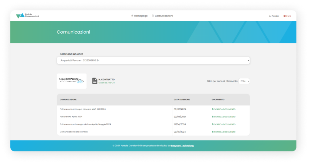 Gli utenti, accedendo tramite le proprie credenziali, possono consultare tutte le comunicazioni ricevute da ogni azienda a cui sono abbonati, centralizzando in un’unica area tutti i messaggi e documenti. Se un utente è cliente di più aziende che fanno parte del portale, può visualizzare e interagire con le comunicazioni provenienti da tutte queste aziende, rendendo l’esperienza utente ancora più fluida e completa.